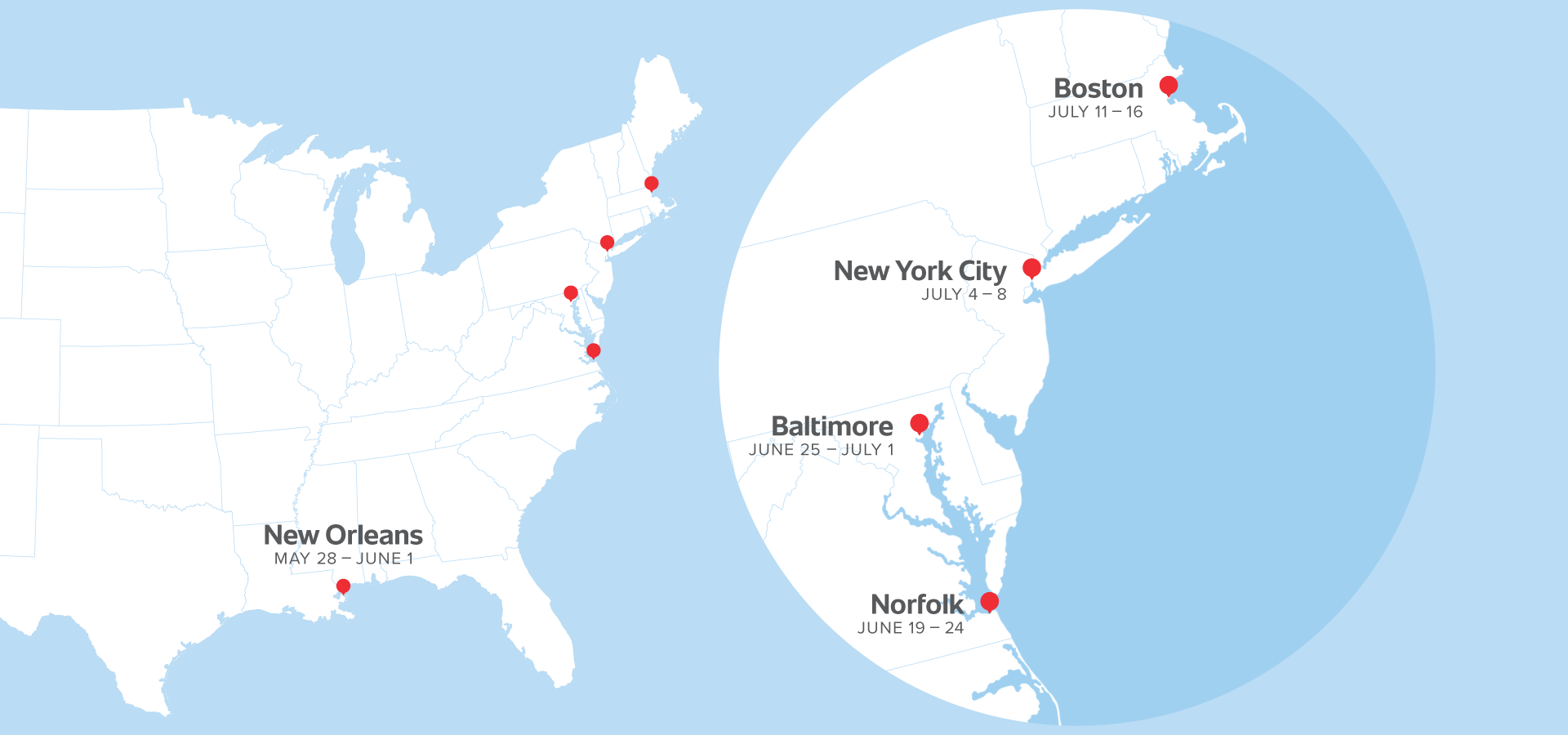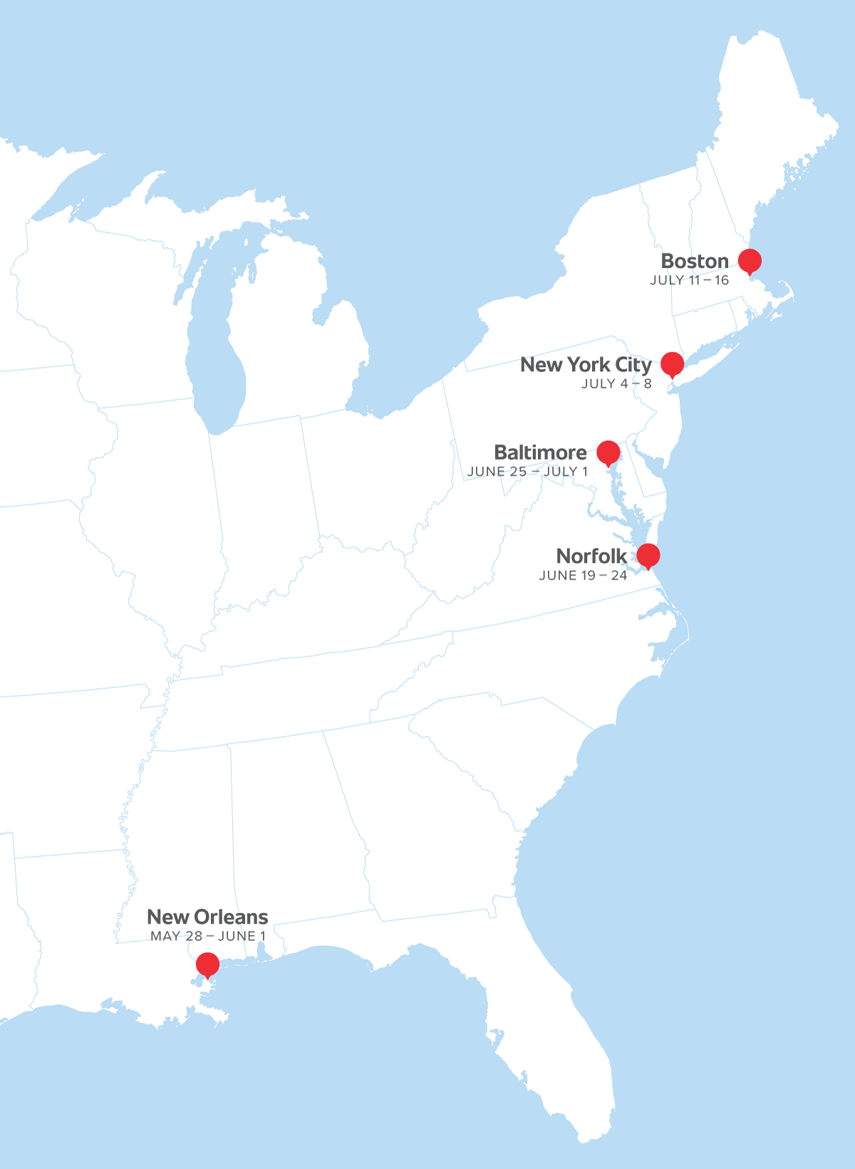 Sail Boston® is honored to be among the elite group of US ports selected to host the Sail250® international fleet, including New Orleans, Norfolk, Baltimore, and New York City.